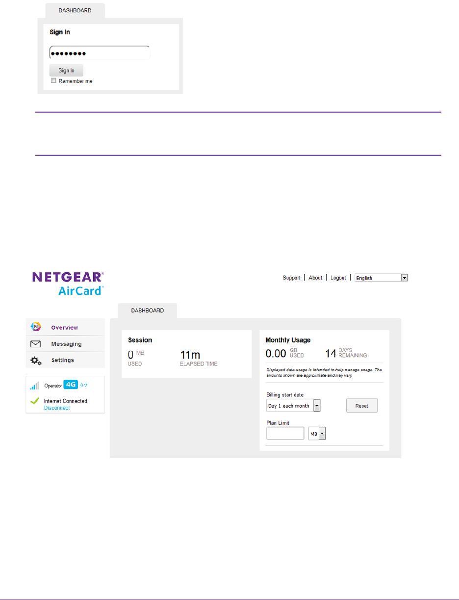 a. In the Sign In field, enter the modem’s admin password.