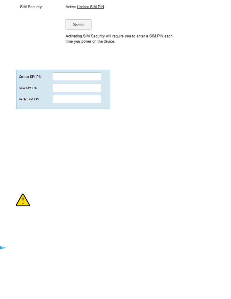 6. Click the Update SIM PIN link.