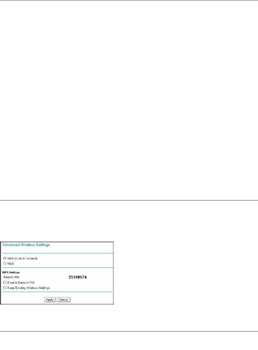 The Advanced Wireless Settings screen includes settings for Push 'N' Connect (WPS) and for