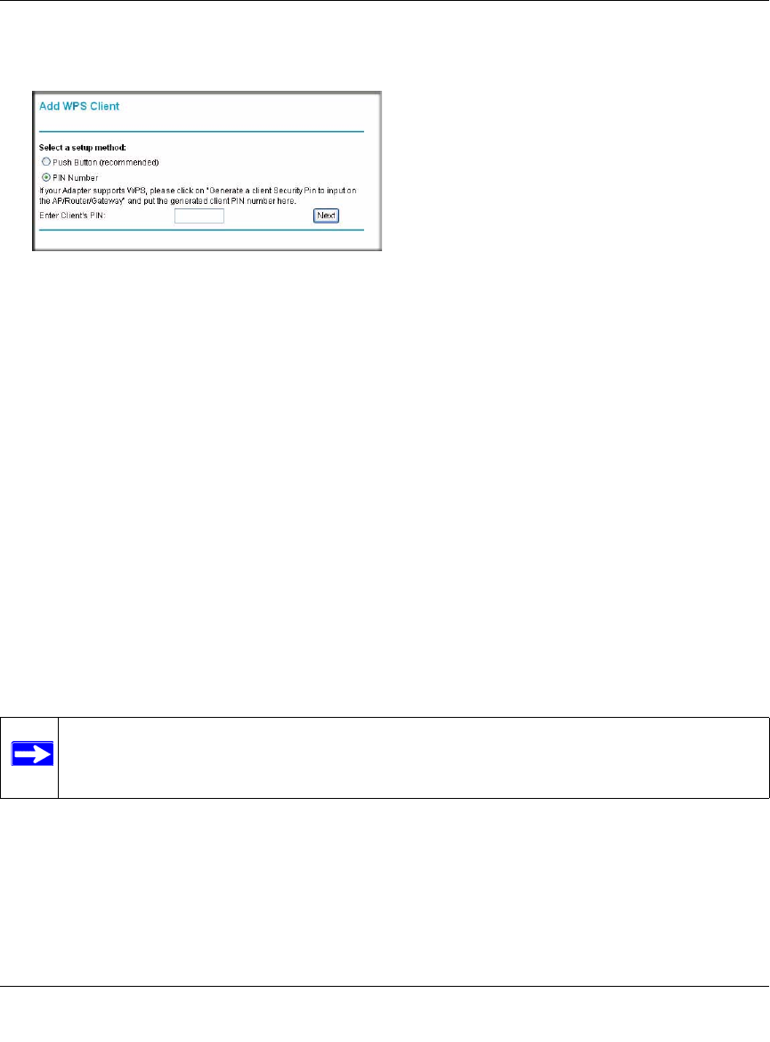 the router are clients), and then click Next. The Add WPS Client screen displays: