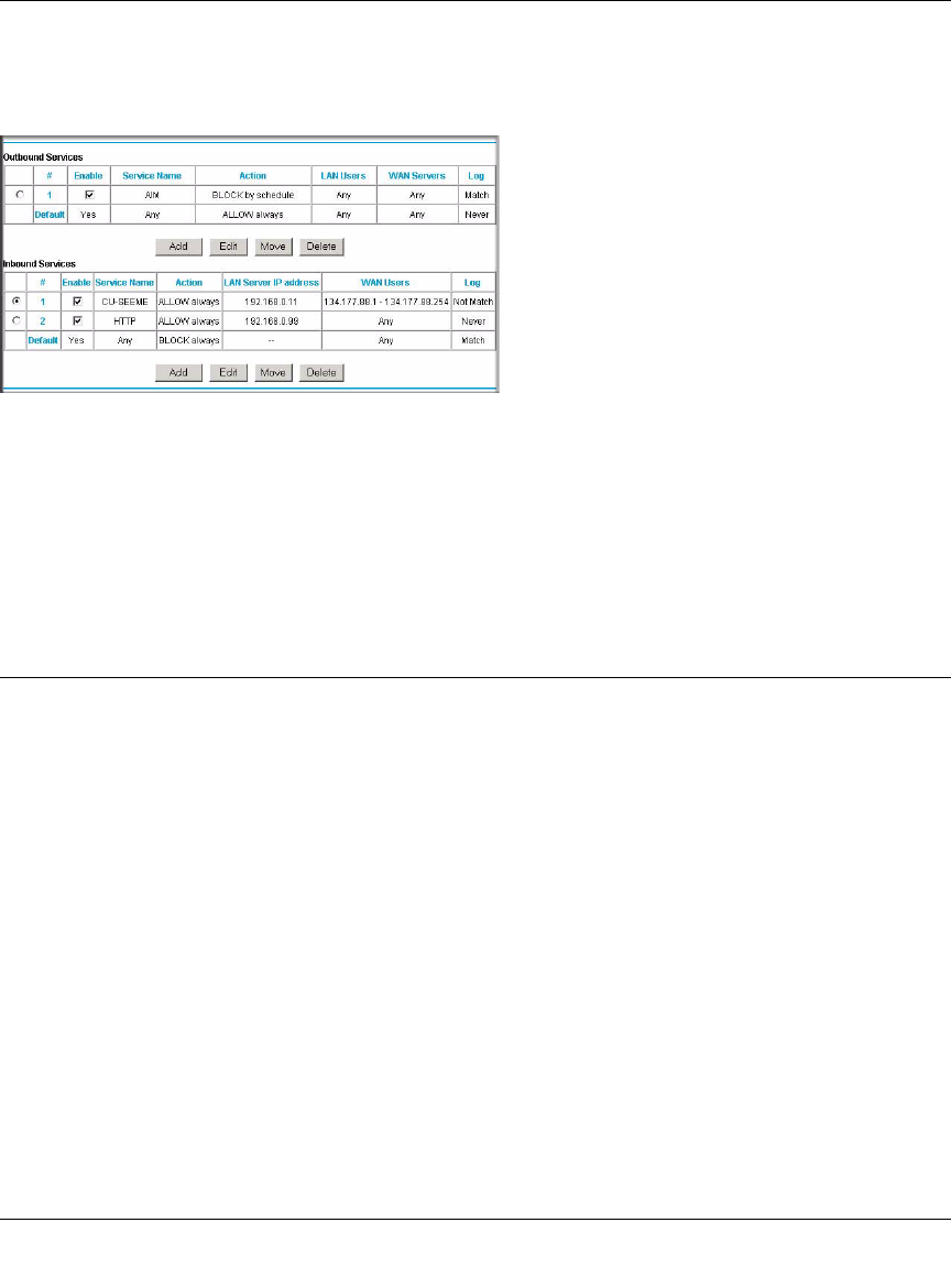 determining the disposition of a packet. The Move button allows you to relocate a defined rule to a