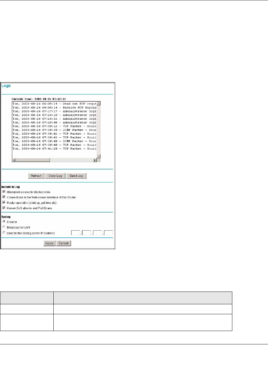 and administrator logins. If you enabled content filtering in the Block Sites screen, the Logs screen