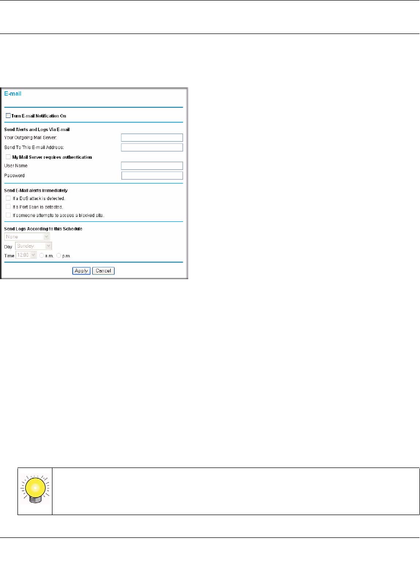 To set up the router so that you can receive logs and alerts by e-mail, select Email from the router