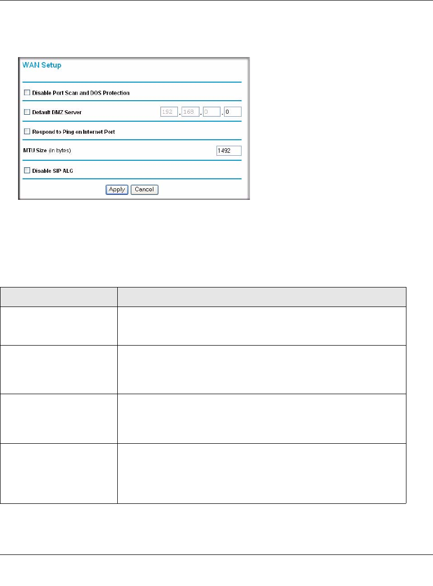 The WAN Setup fields are described in the following table: