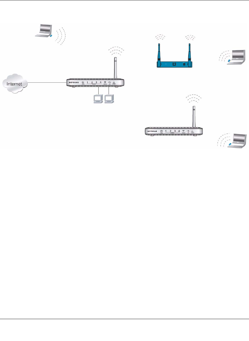 • Configure AP 1 the MBR624GU router in the previous figure) on LAN Segment 1 with