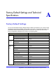 The factory default settings are shown in "Factory Default Settings " in Appendix A.