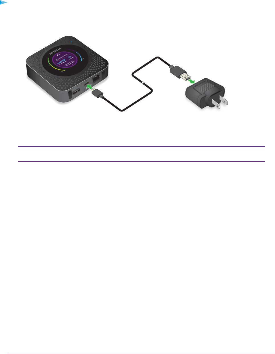 1. Attach one end of the micro USB cable to the connector on the right on the mobile router and attach