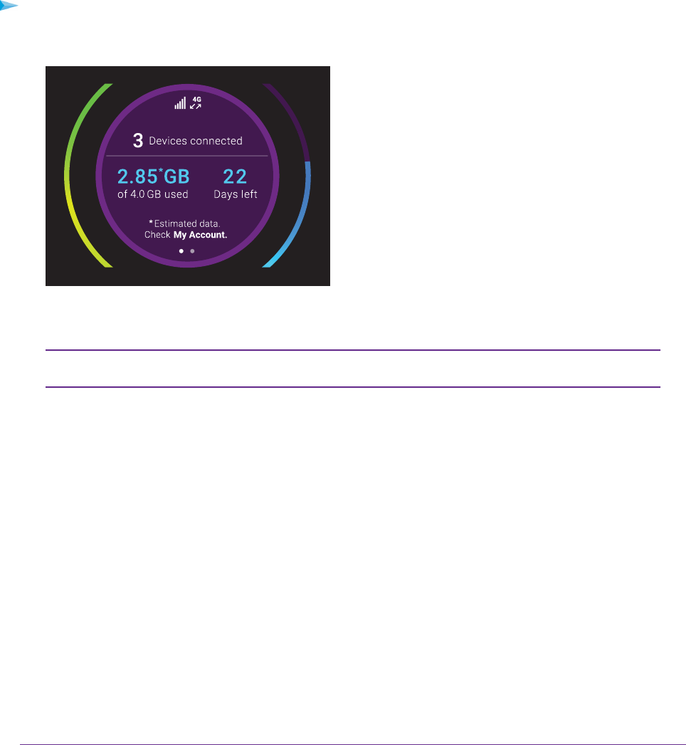 You can view an estimate of your data usage on the mobile router LCD, from the NETGEAR Mobile app,