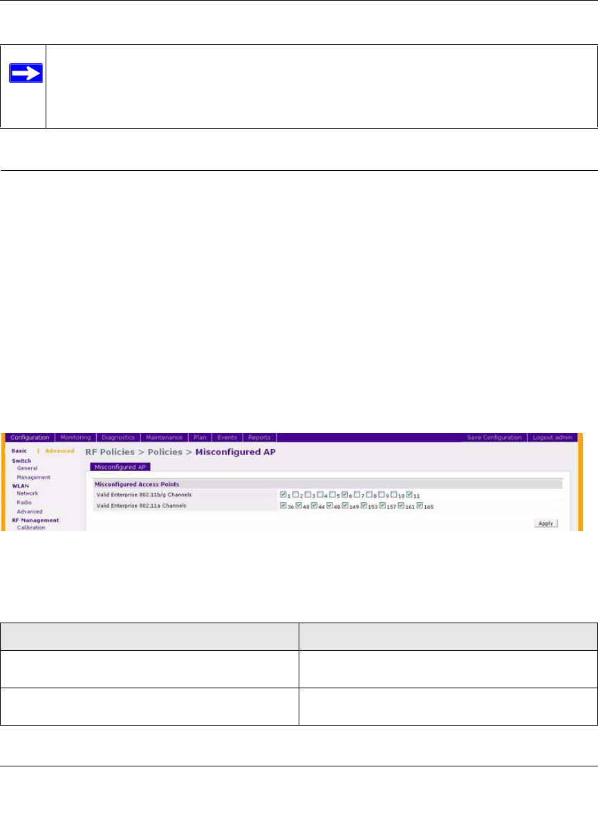 An AP is classified as misconfigured if it does not meet configured valid channels. To configure