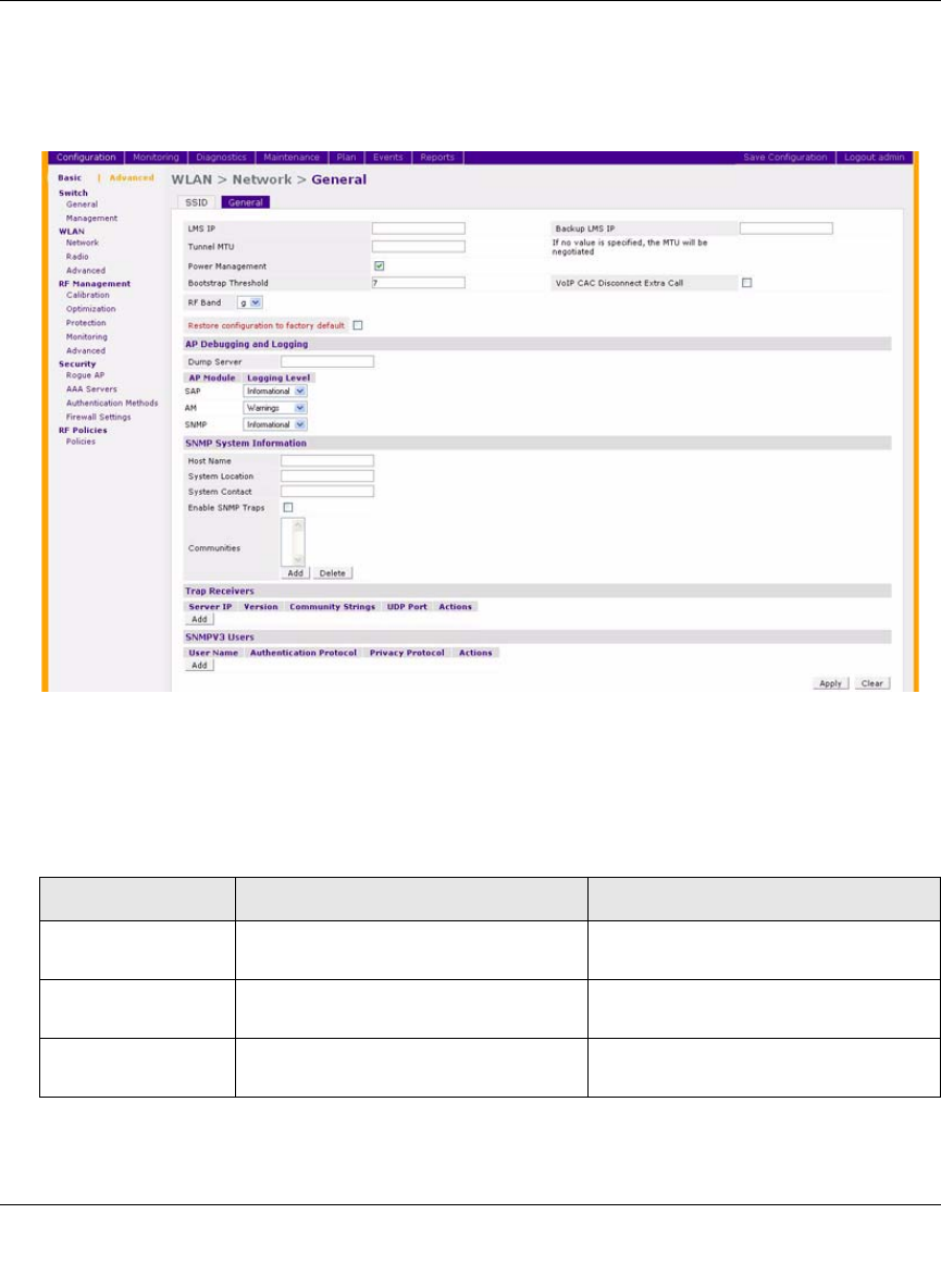 1. Navigate to the Configuration > Advanced > WLAN > Network > General page of the master