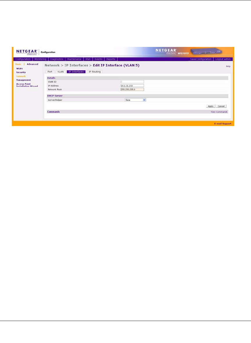 for the VLAN you just added. Enter the IP address and network mask of the VLAN interface.