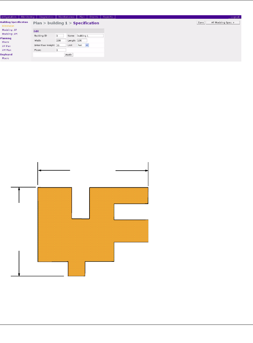 • Width and Length. Enter the rectangular exterior dimensions of the building. The valid range
