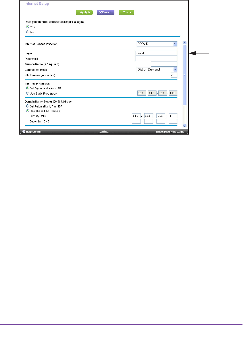 5. In the Does your Internet connection require a login? section of the screen, select the