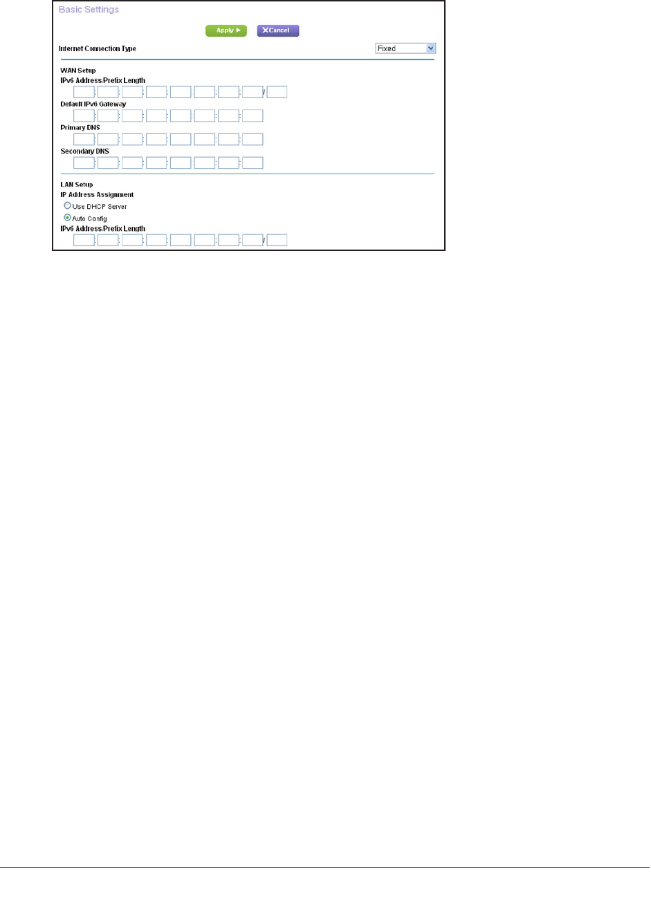6. Configure the fixed IPv6 addresses for the WAN connection: