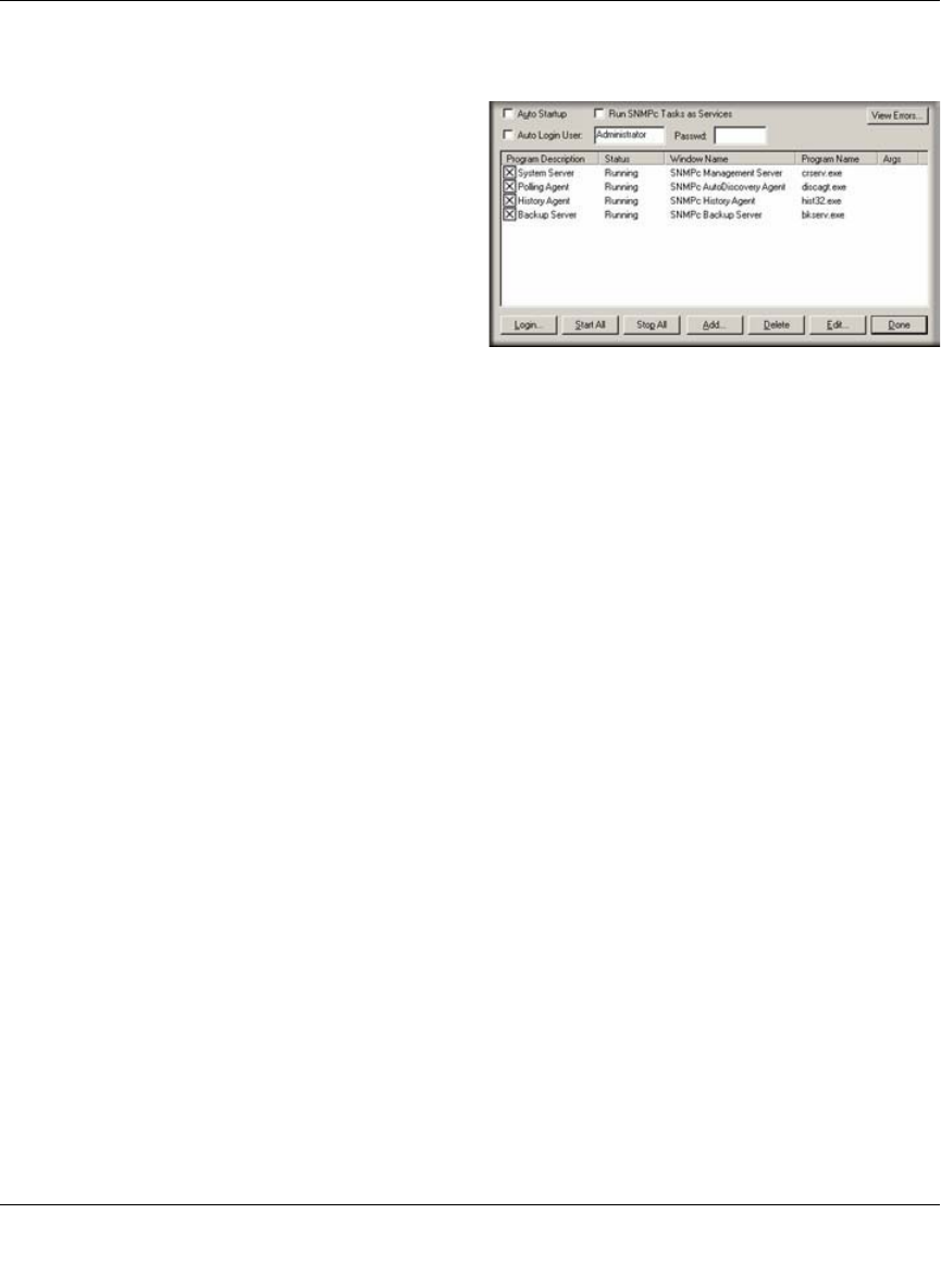 2. Use the Windows Start Programs/NETGEAR ProSafe NMS/Startup System menu to restart