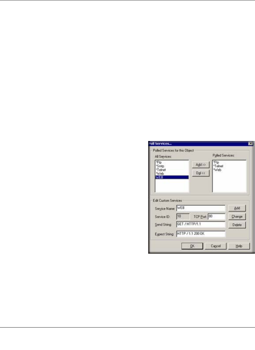 Use the controls in the upper portion of the dialog box, Polled Services for this Object, to manage
