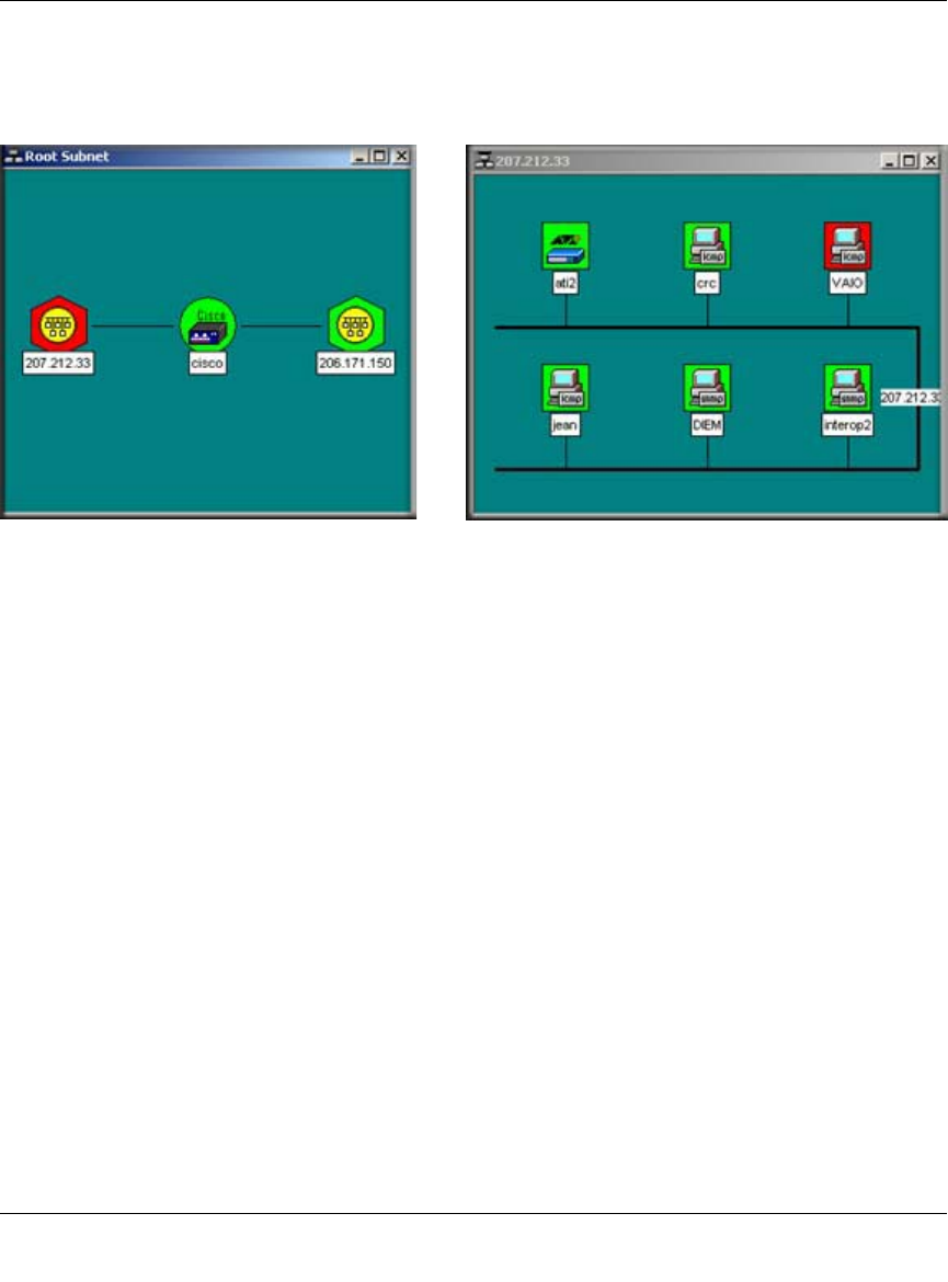 The figure below shows a sample top-level and subnet Map view for a small network. Note that