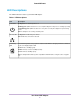 Your PowerLINE Adapter 1 This chapter describes your PowerLINE adapter and how your adapter fits into a home network. It also explains the security features and how to secure your PowerLINE network with a private encryption key. The chapter contains the following sections: • • • • • • PLP2000 Adapter LED Descriptions Button Descriptions Ethernet Port Extra Outlet Adapter Label For more information about the topics covered in this manual, visit the NETGEAR support website at netgear.com/support.