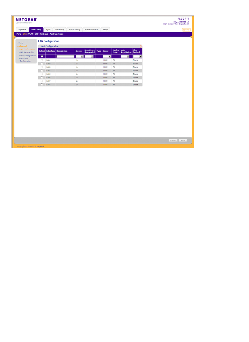 – Up – Indicates the LAG is currently linked and forwarding traffic.