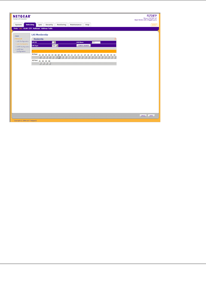 The Advanced LAG Membership screen contains the following fields: