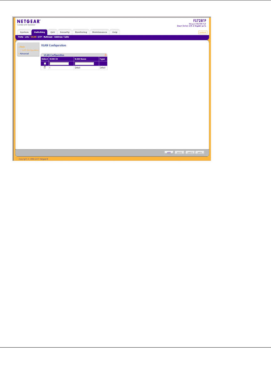 1. Click Switching > VLAN > Basic > VLAN Configuration. The Basic VLAN Configuration