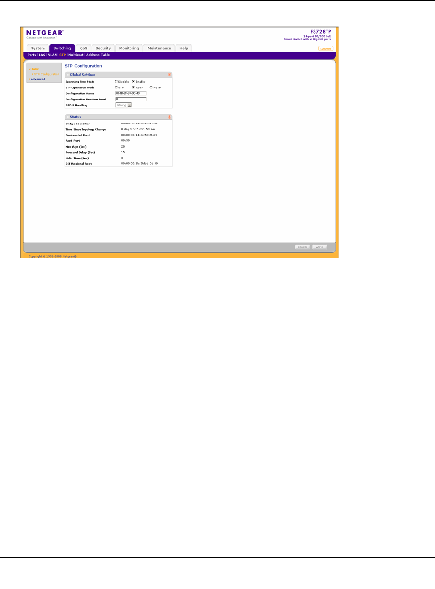 • STP Operation Mode – Specifies the STP mode enabled on the device. The possible field