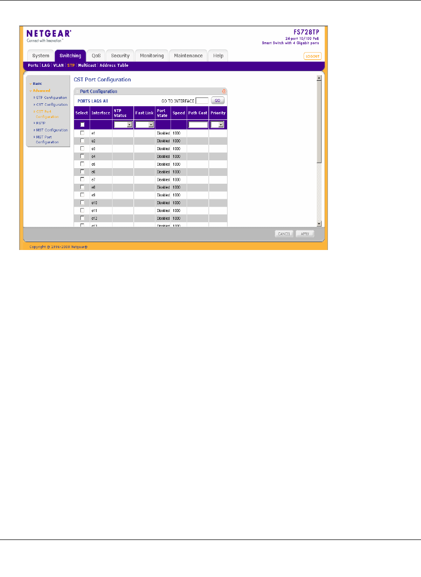 interface, the Port State is automatically placed in the Forwarding state when the port link
