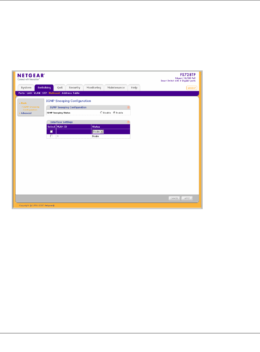 1. Click Switching > Multicast > Basic > IGMP Snooping Configuration.