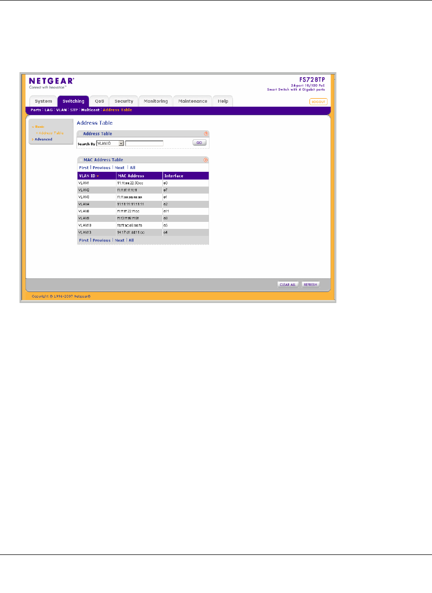 1. Click Switching > Address Table > Basic > Address Table. The Basic Address Table screen