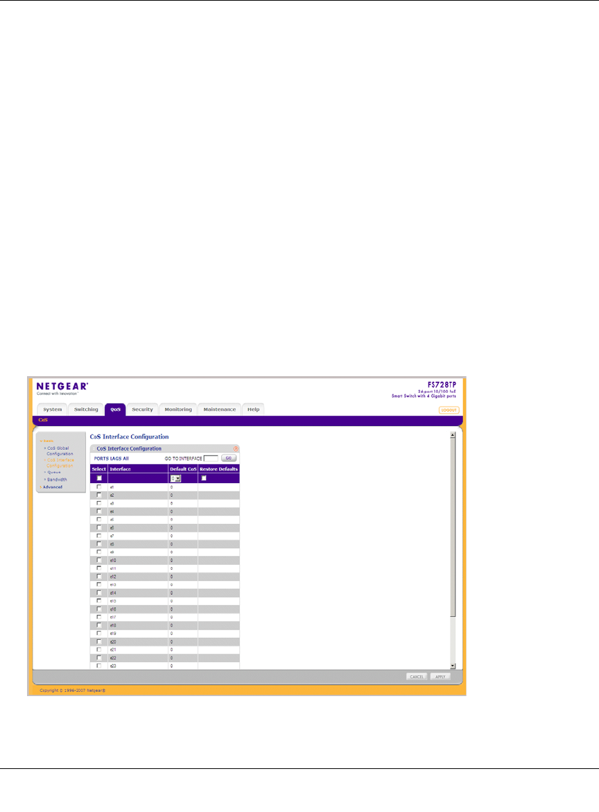 1. Click QoS > CoS > Basic > CoS Interface Configuration. The CoS Interface Configuration