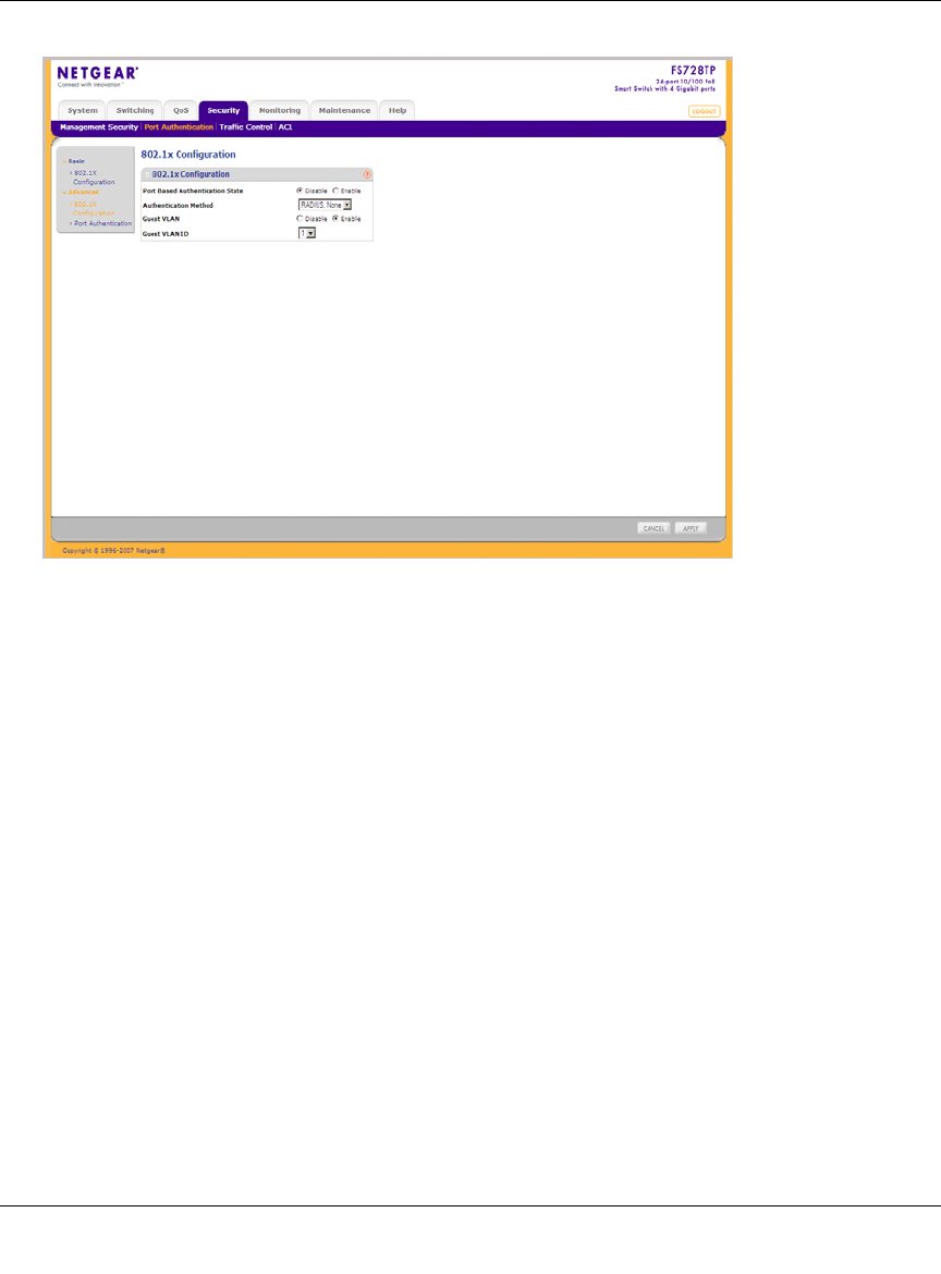 • Port Based Authentication State – Enable port-based authentication on the device. The