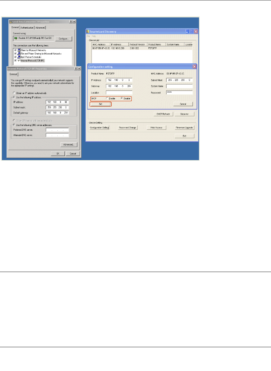 the switch. The PC IP address must be different from that of the switch but lie in the same