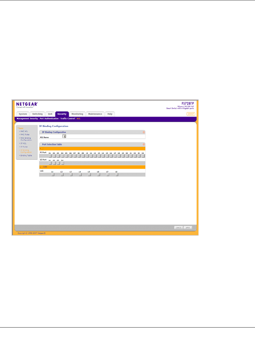1. Click Security > ACL > IPv6 Binding Configuration. The IPv6 Binding Configuration