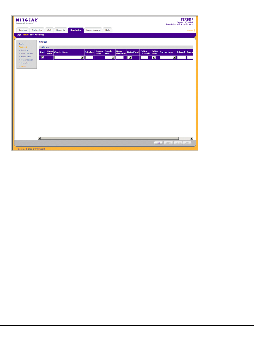 • Rising Threshold – Enter the rising counter value that triggers the rising threshold alarm.
