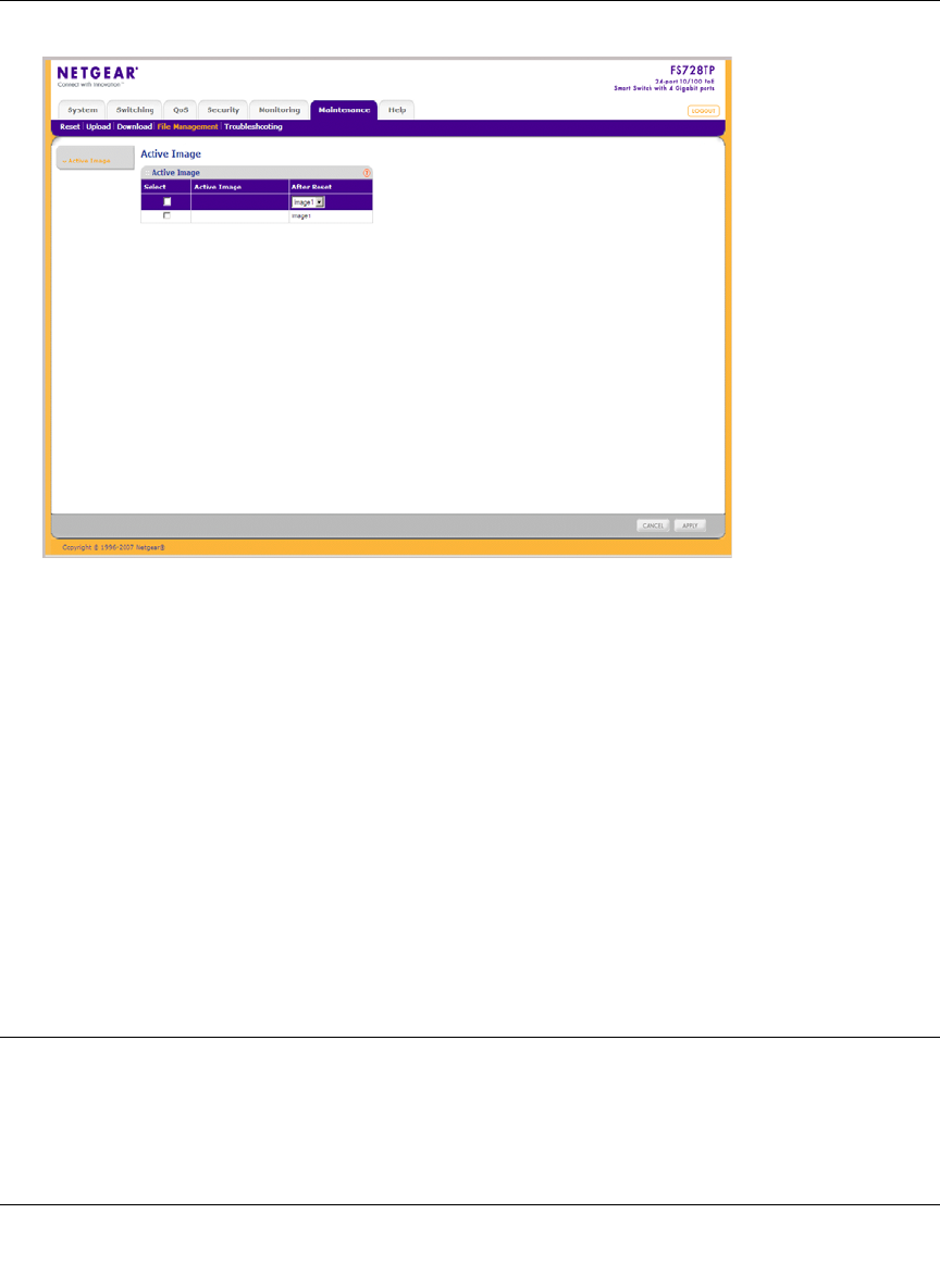 • After Reset – Select the image file that is active after the device is reset. The possible