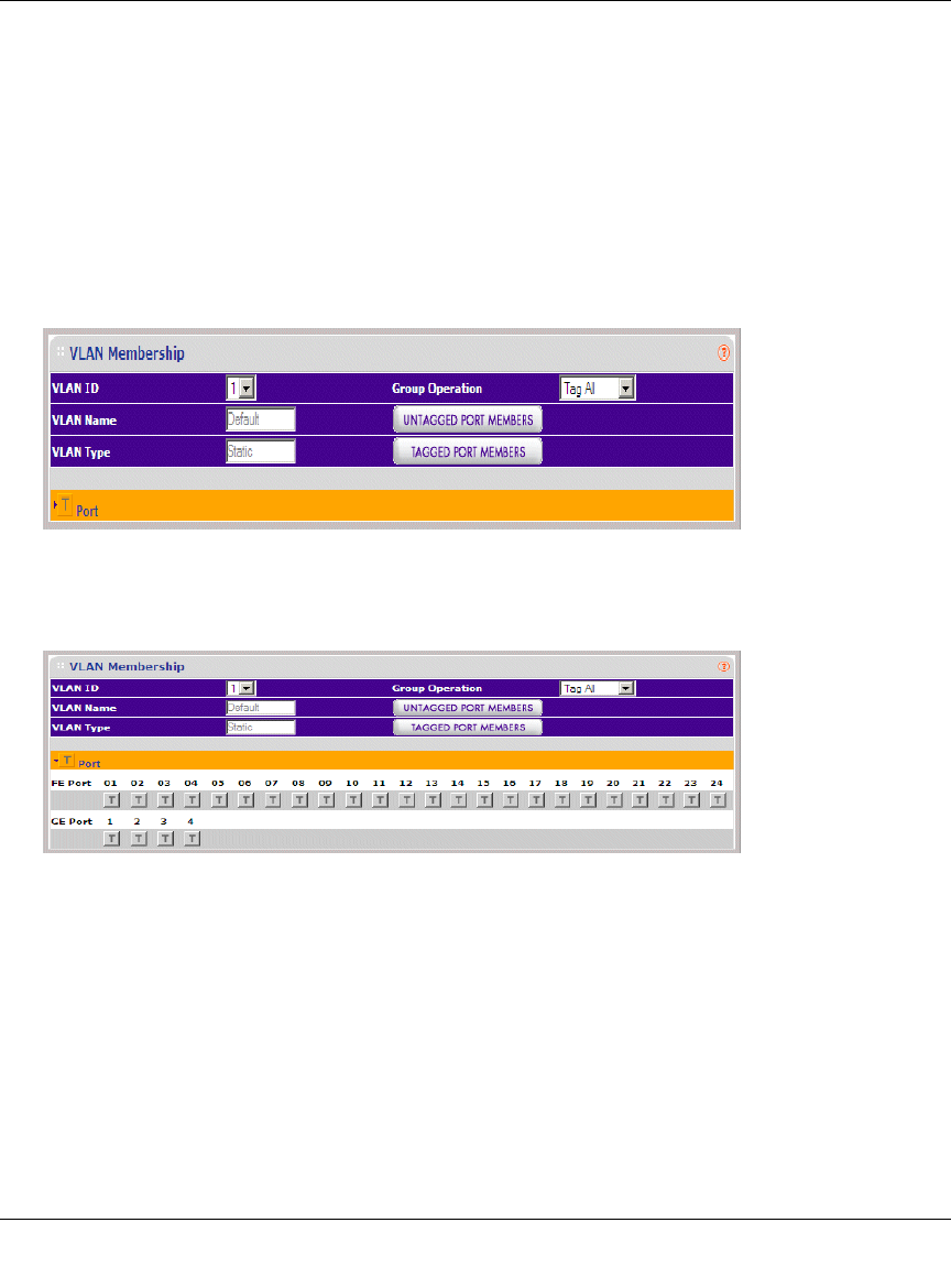 2. Click on the Port gold button to display the ports, which are now all Tagged.