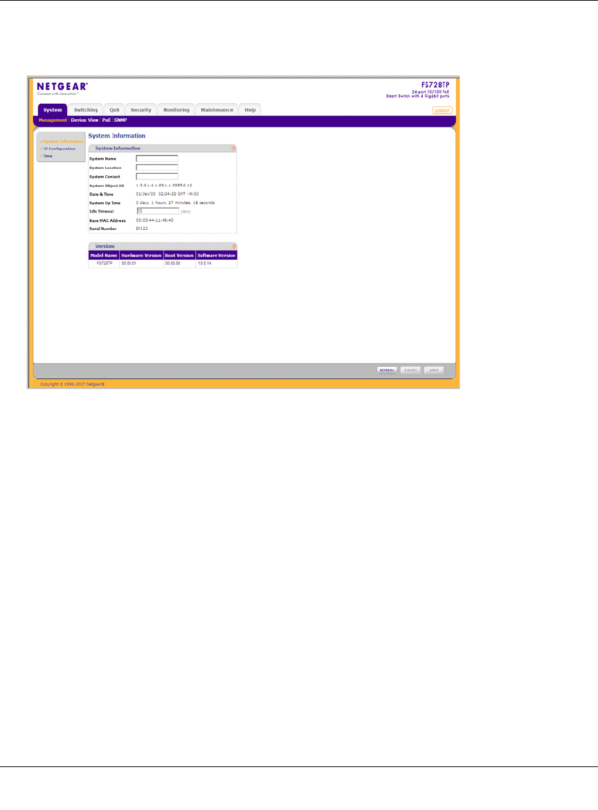 • System Up Time – Displays the amount of time since the most recent device reset. The