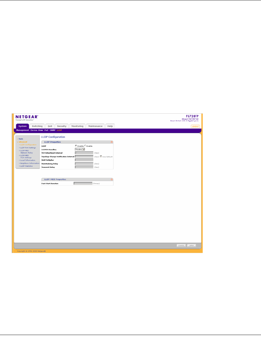 1. Click System > LLDP > Advanced > LLDP Configuration. The Advanced LLDP
