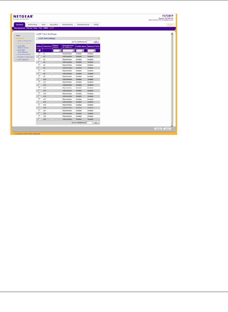 • Interface – Displays the specific interface for which LLDP parameters are defined.