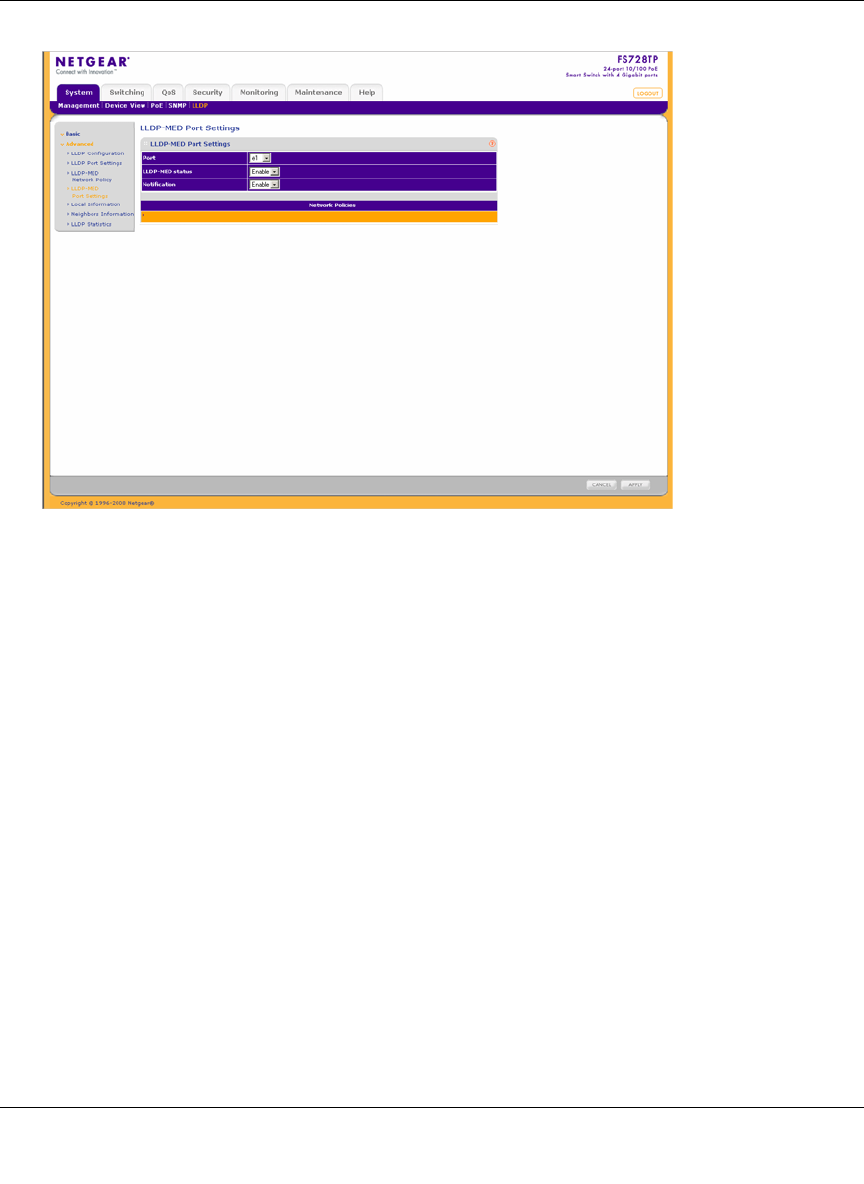 • LLDP-MED status – Select the LLDP-MED status for the selected port. The possible