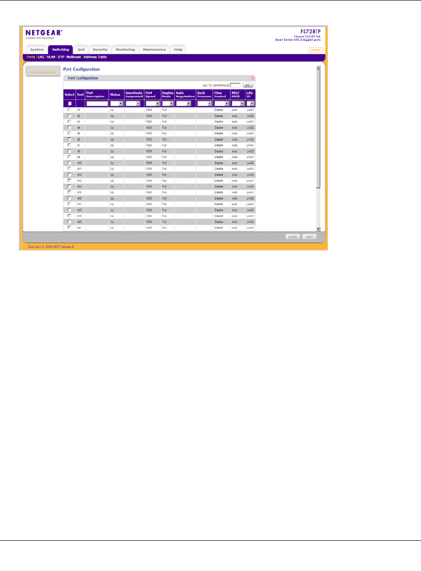 • Port Speed – Select the data transmission rate for the port. The port type determines