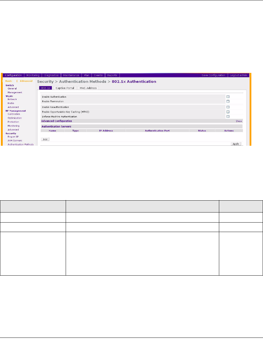 Table 7-1. 802.1x Authentication Browser Interface Page Options