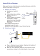 Install Your Router Make sure that your Internet service is active before you install the router. Follow steps 1 through 5. 1. Prepare your modem. 1 a. Unplug your modem’s power. DSL or cable b. If the modem has a battery backup, remove its batteries. c. If your modem was already Internet connected to another router, disconnect the cable between your modem and that router. Your modem should now be Modem completely turned off, and cabled only to the wall jack for your Internet service. 2. Connect your modem.