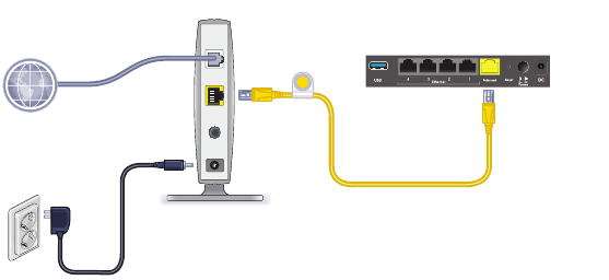 Routers enthaltenen gelben Netzwerkkabel an den Internet-Port