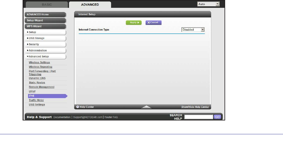 1. Select Advanced > Advanced Setup > IPv6 to display the following screen:
