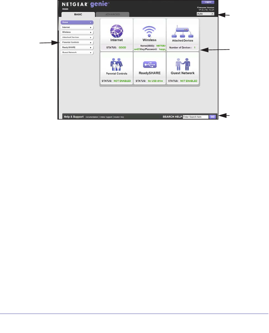 • Help & Support. Go to the NETGEAR support site to get information, help, and product