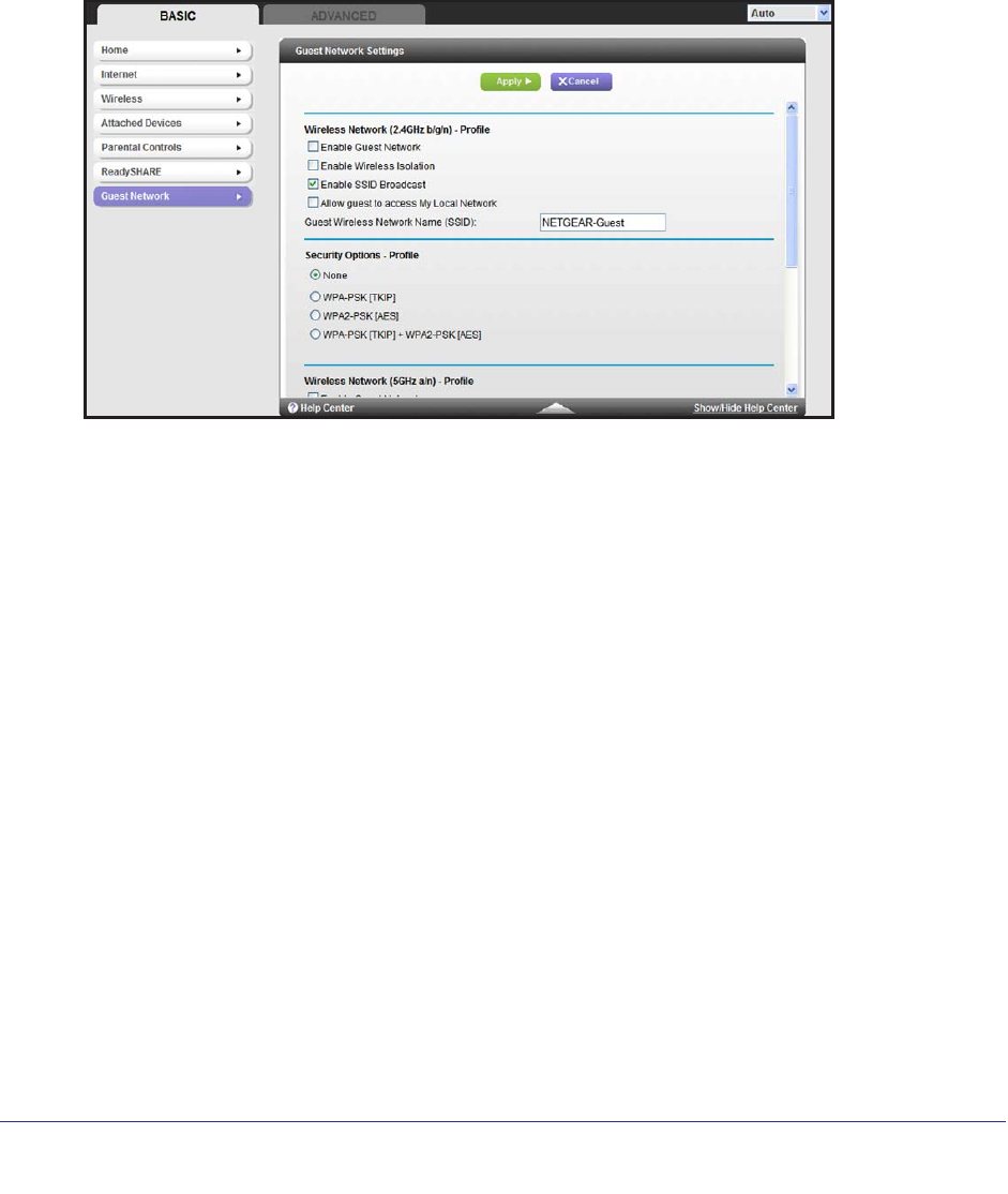 Enable Guest Network. When this check box is selected, the guest network is enabled,