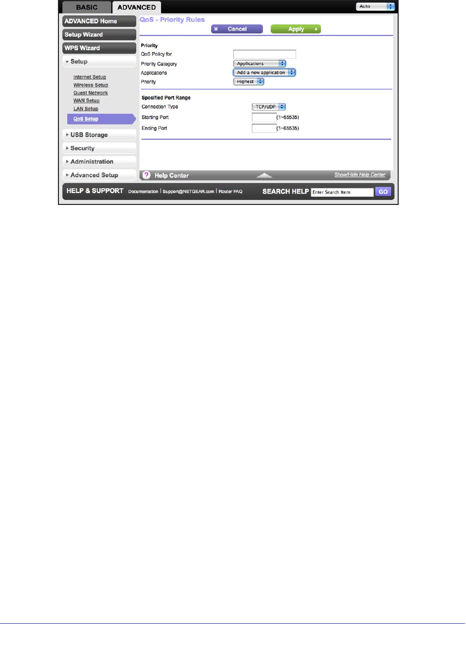 1. Select Advanced > Setup > QoS Setup to display the QoS Setup screen. Select the