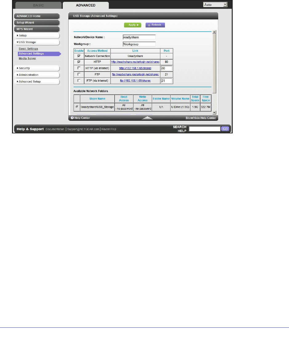 • Share Name. If only 1 device is connected, the default share name is USB_Storage. You