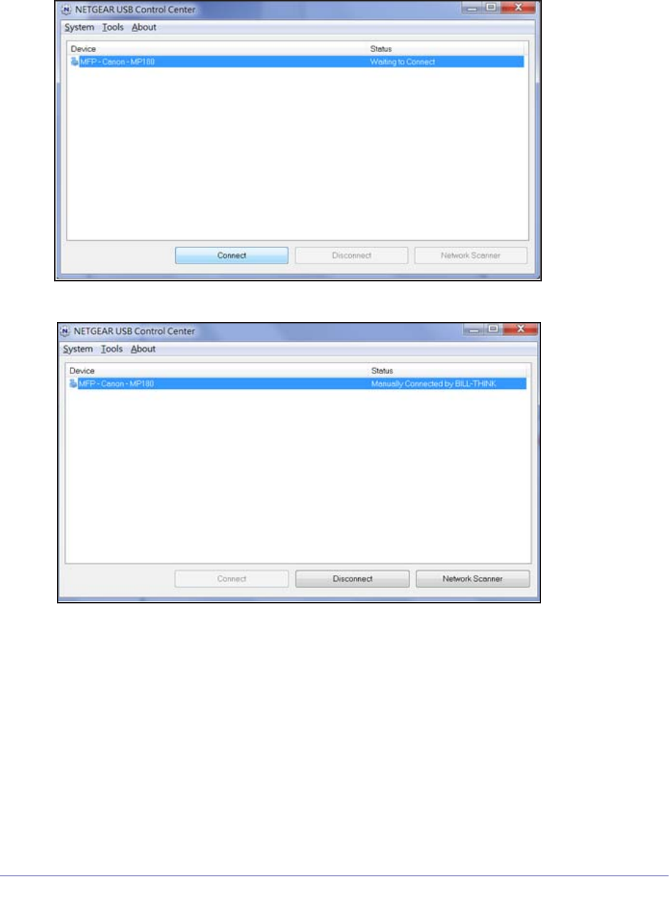 Once the connection is established, the status changes to Manually connected by xxx.